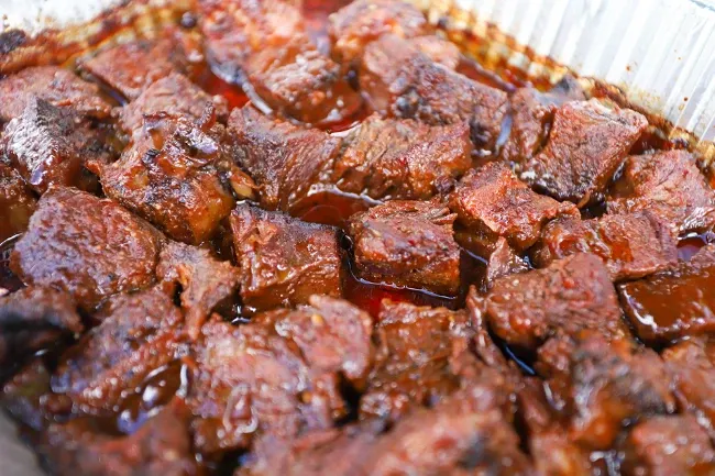 Your day just got luckier! Corned beef burnt ends, marinated in Guinness beer, brown sugar, and butter! Then put into the smoker and glazed with our Beir Hall Mustard and Jackpot BBQ sauce!
